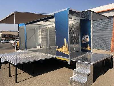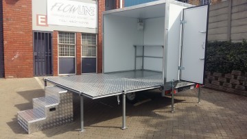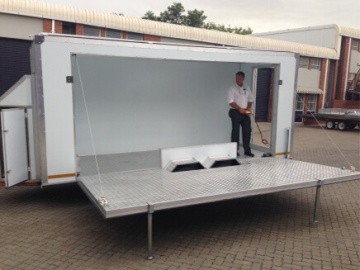 3m Promotional trailer with walk on stage, rear door, power points and any added extras.