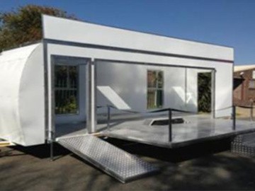 Winch operated 3 fold down stages. retractable awning and wheel chair access.