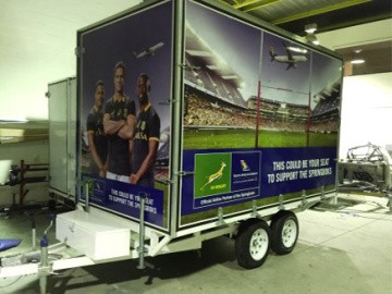 Custom built trailer, perfect for promoting your products in neighboring countries.