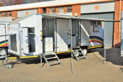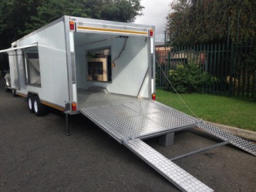 5-6m Trailer with rear and side doors, viewing windows and interior lights.
