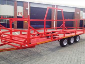 6m Heavy duty tri-axle trailer with truss mounting brackets, available in 2.5 or 3.5 ton.