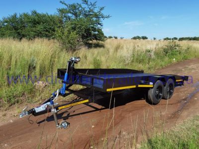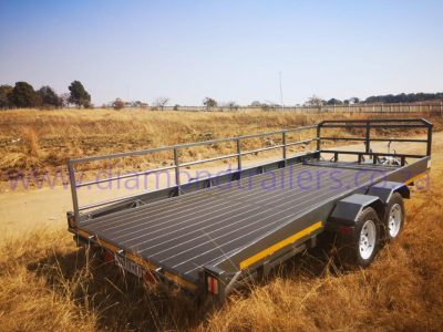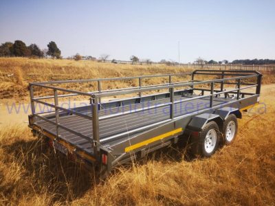 Double axle 2.5 ton with 14" wheels and braking axles and drop sides 0.4m to 0.5m all around.