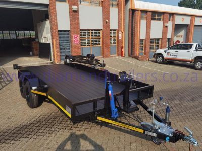 Available as a roll back or ride on car trailer. Both trailers have a tilting system and fold down ramps. Available in 2.5, 3.2 or 3.5 ton